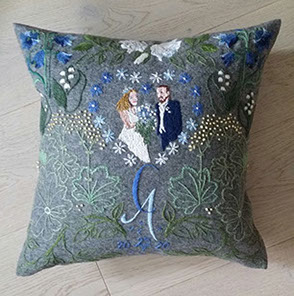 Kudde till ett brudpar som tycker om blått.